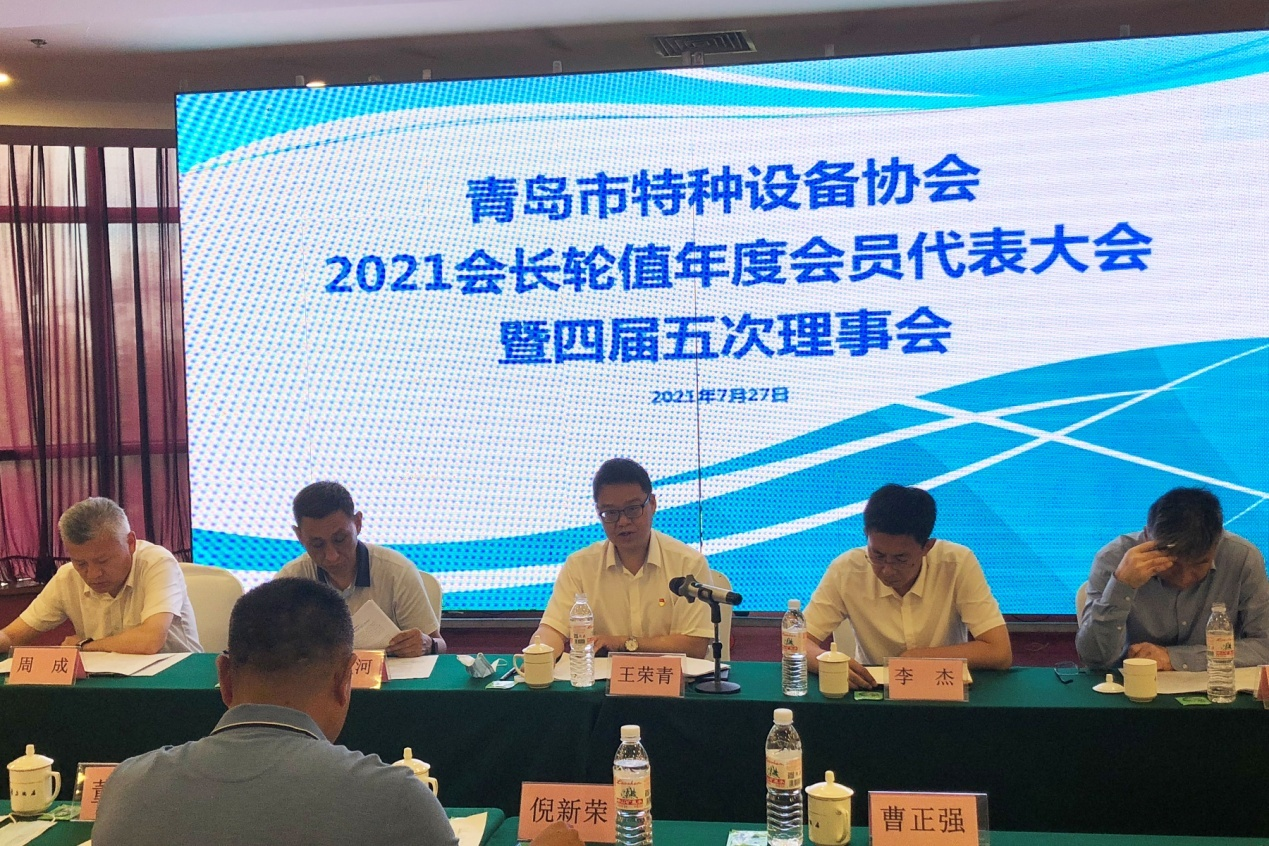 2021年7月27日上午,青岛市特种设备协会2021会长轮值年度会员代表大会暨四届五次理事会在青岛饭店隆重召开。青岛市市场监管局相关部门领导、青岛市特种设备检验研究院主要领导、青岛市特种设备协会秘书长(兼法人)吕良广、监事会监事长李建隆(青岛科技大学教授)出席了会议;会议由协会常务副秘书长解赞华同志主持。
